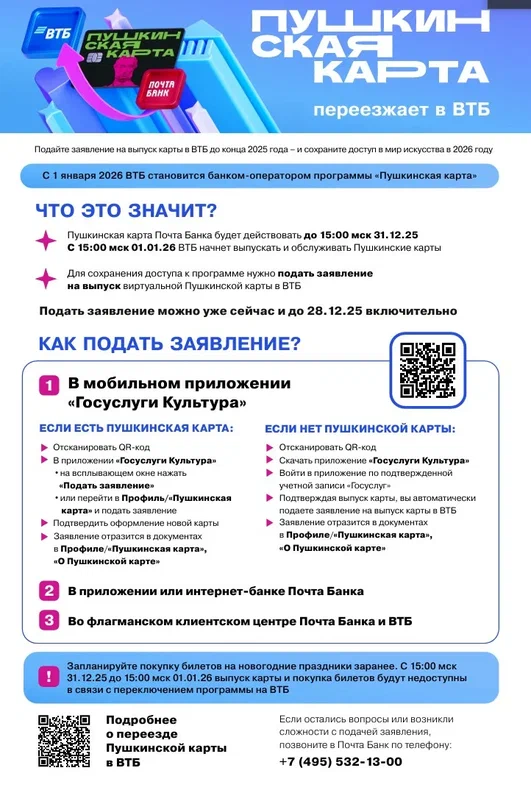 Пушкинская карта переезжает в ВТБ
